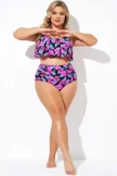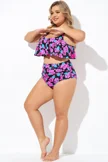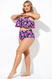 Plus Size Round Neck Black Patchwork Bikini Top