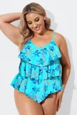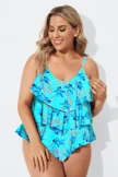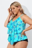 Flower Printed V-neck Ruffle Women Tankini Top - PremCurve