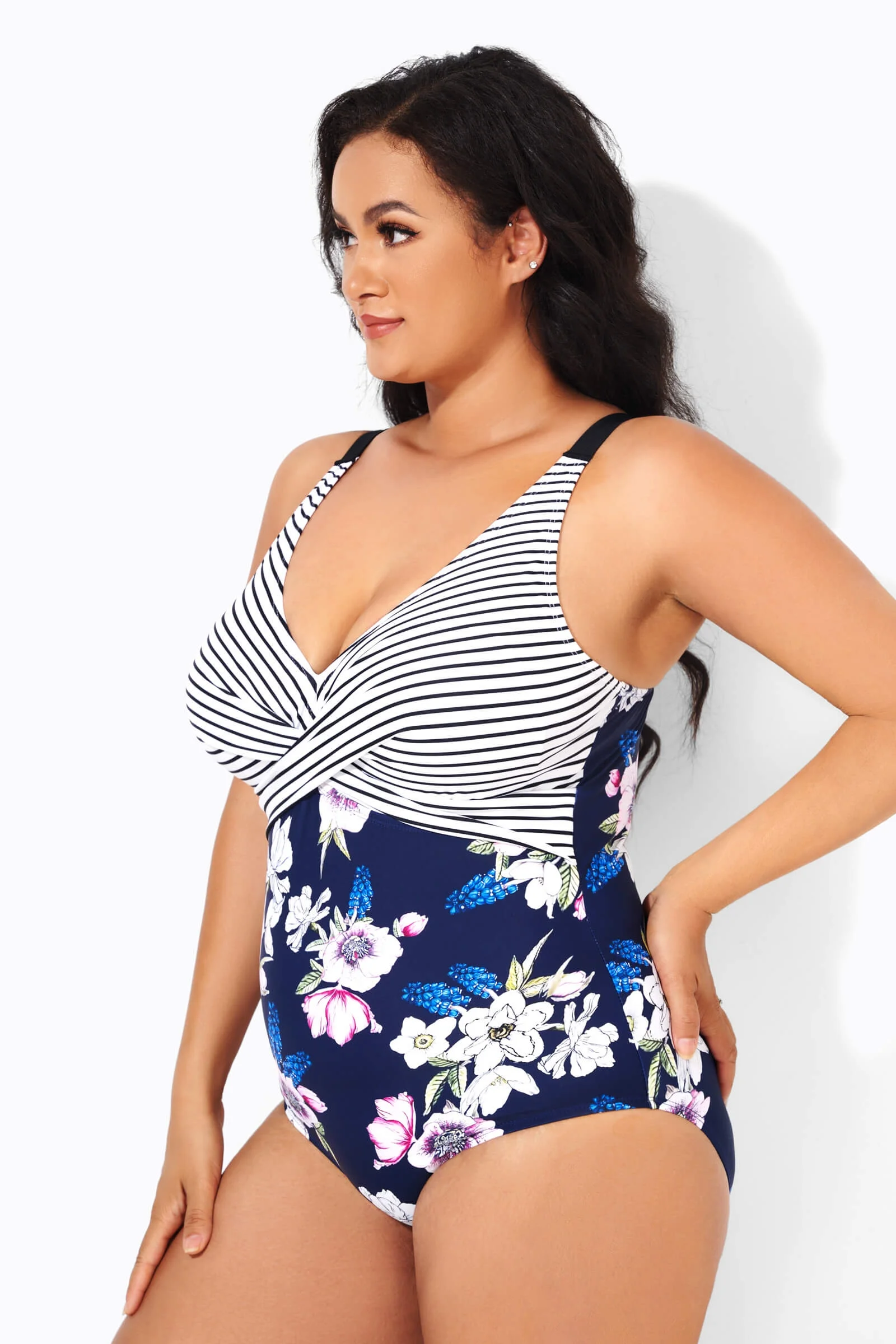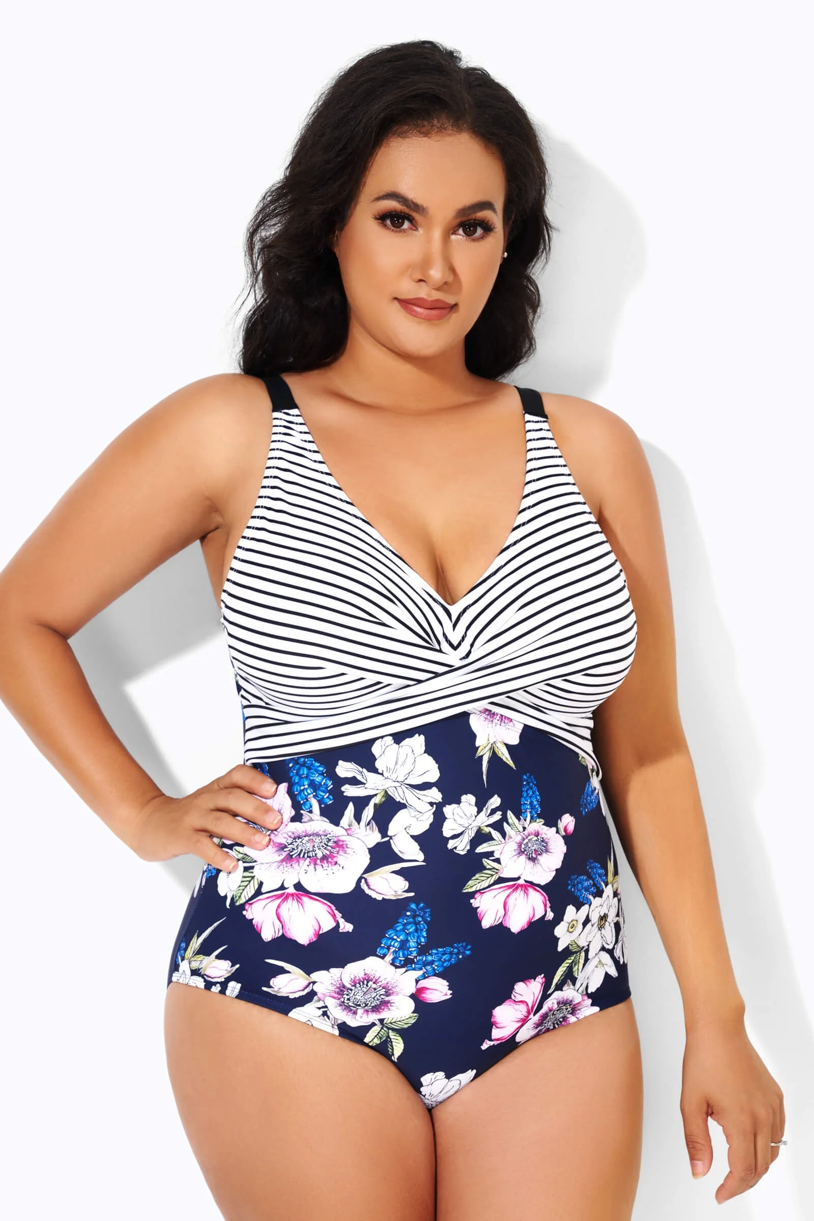 Modern Sarong Front V-Neck One Piece Swimsuit