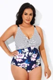 Flower Printed V-Neck Tummy Control One Piece Swimsuit
