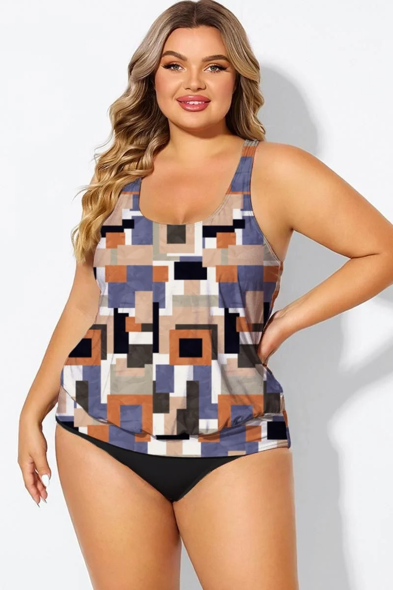 Geometric Racerback Tummy Control Blouson Tankini Top