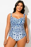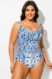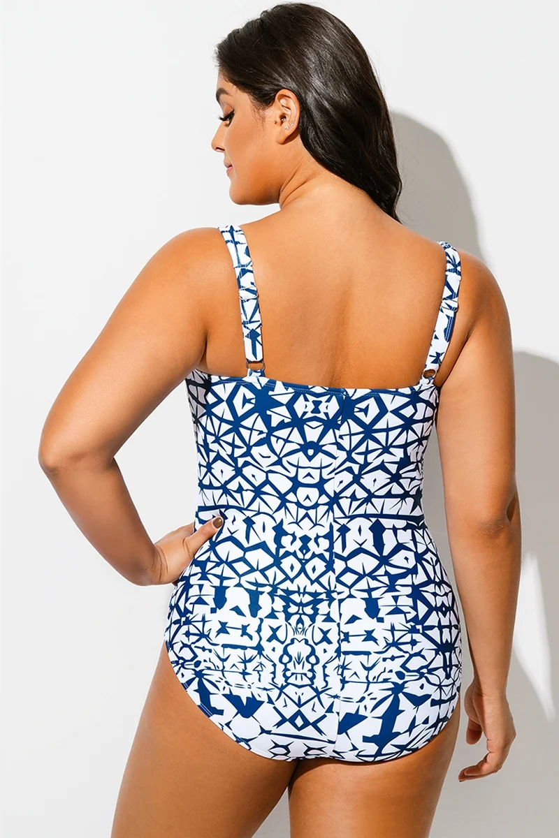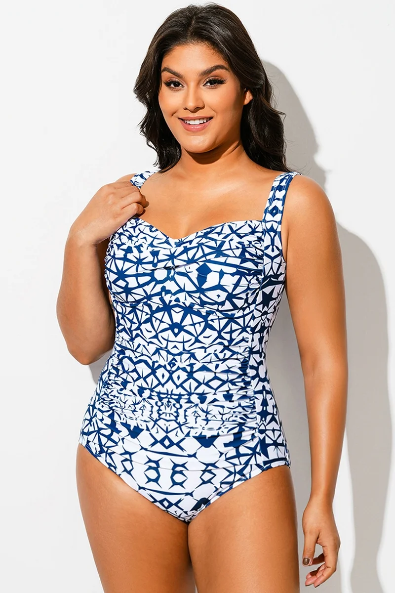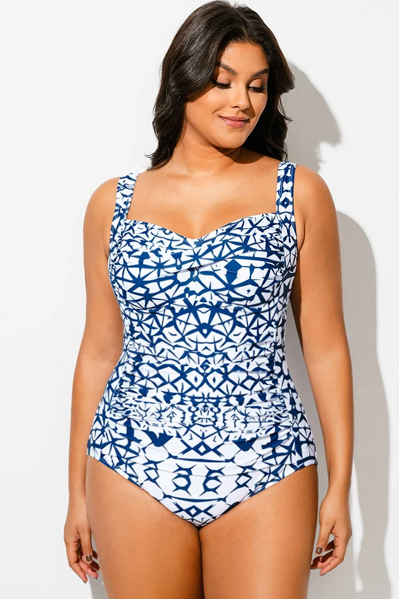 Geometric Sweetheart Neck Twist Front One Piece Swimsuit
