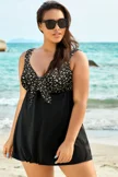 Gold Dots Print Tie Front V-Neck Swimdress  - PremCurve