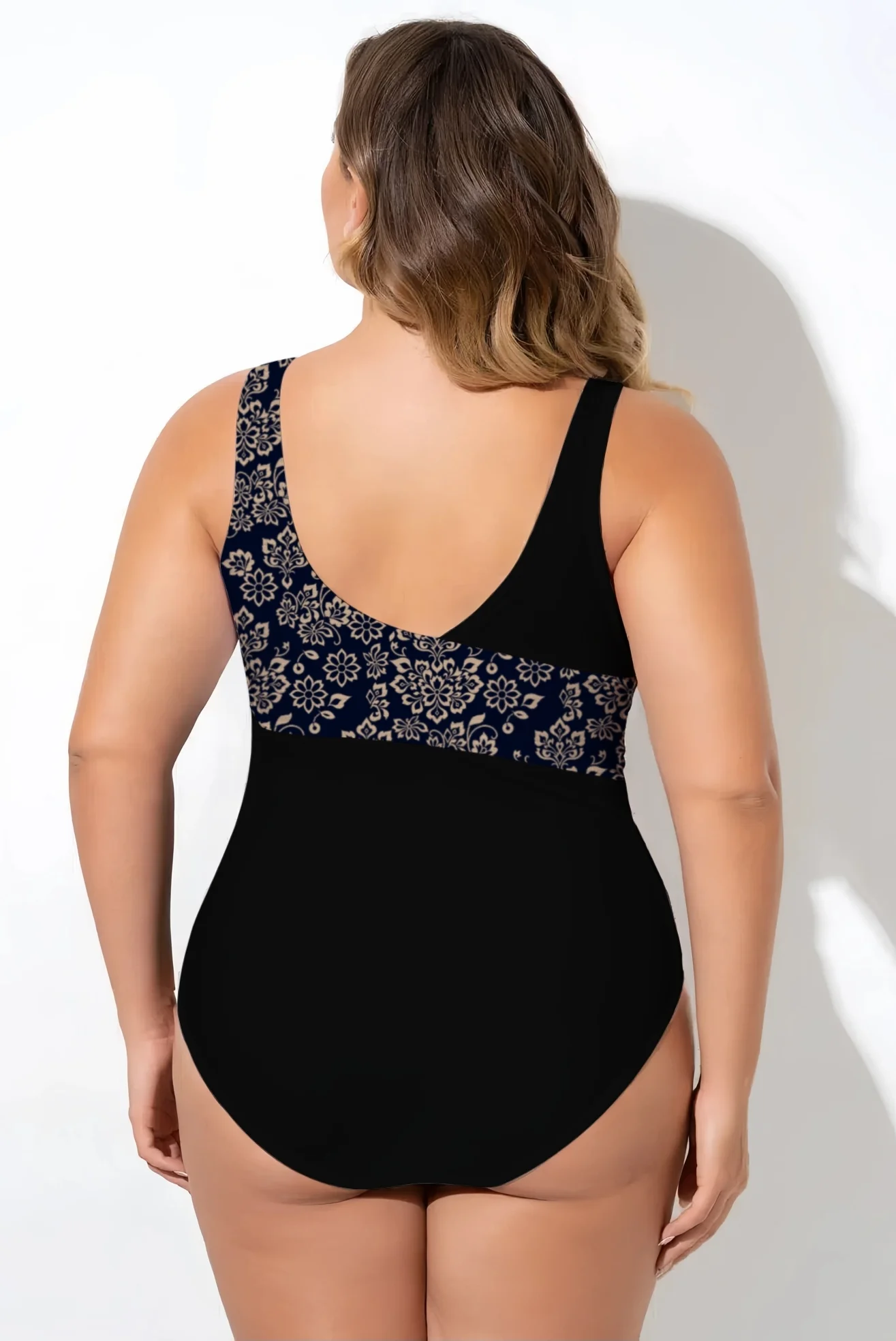 Golden Floral Print Mesh One Piece Swimsuit - PremCurve