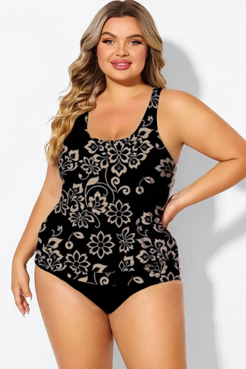 Golden Floral Print Racerback Blouson Tankini Top - PremCurve