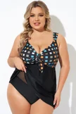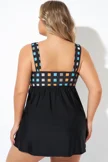 Plus Size Round Neck Black Patchwork Bikini Top