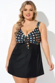 Black Floral Printed Double Strap Women Swimdress