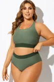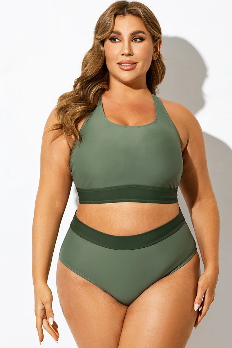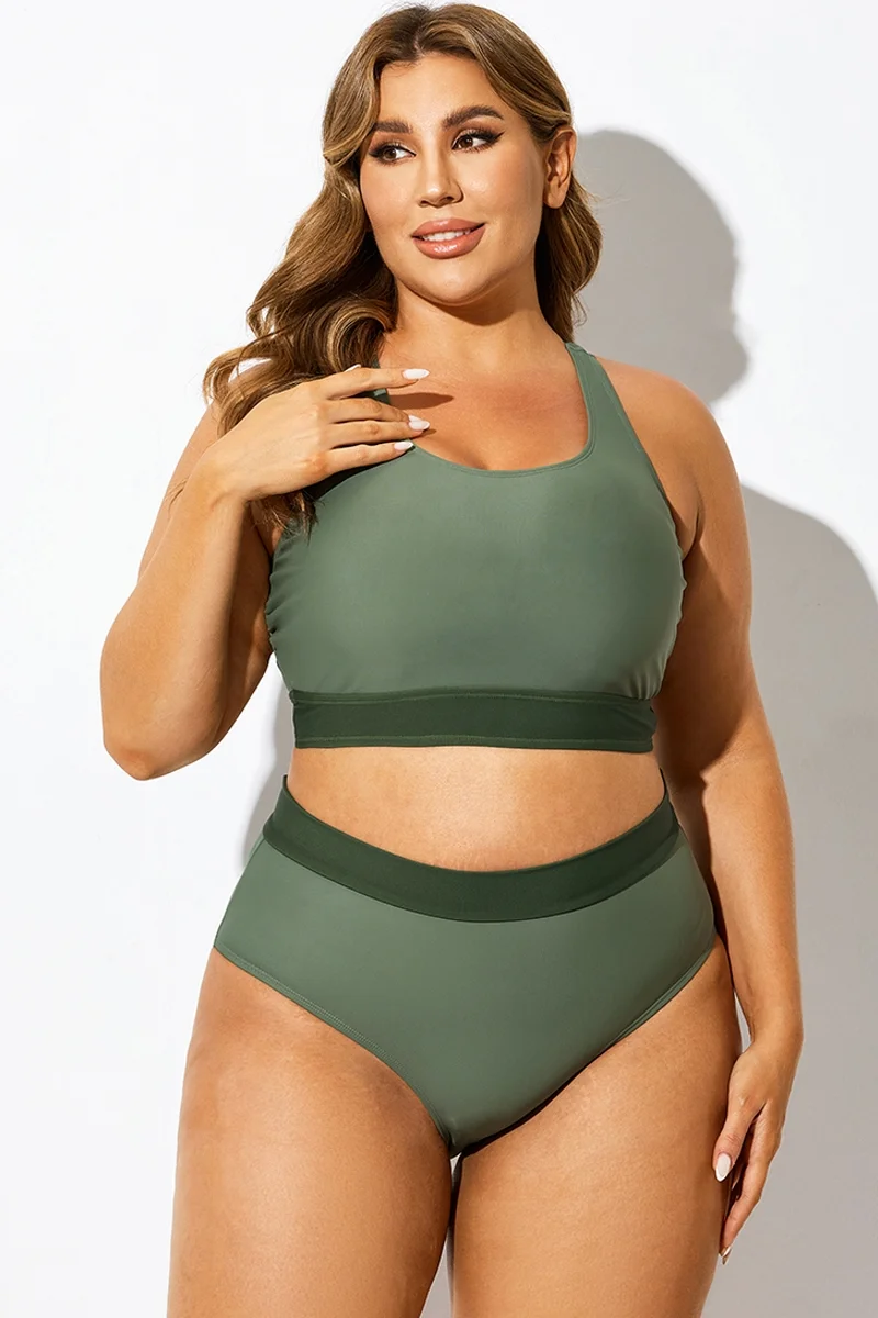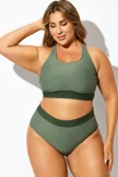 Green Colorblock Square Neck Bikini Top - PremCurve