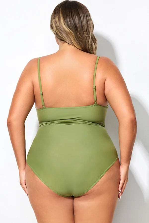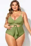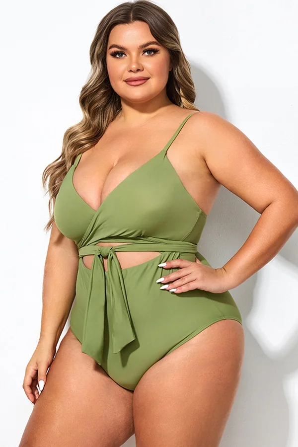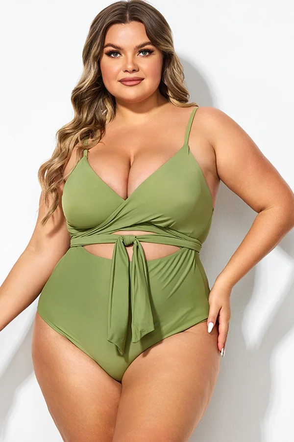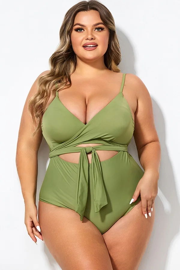 Green Cut Out Wrap One Piece Swimsuit - PremCurve