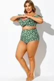 Green Floral High Waist Brief for Lady