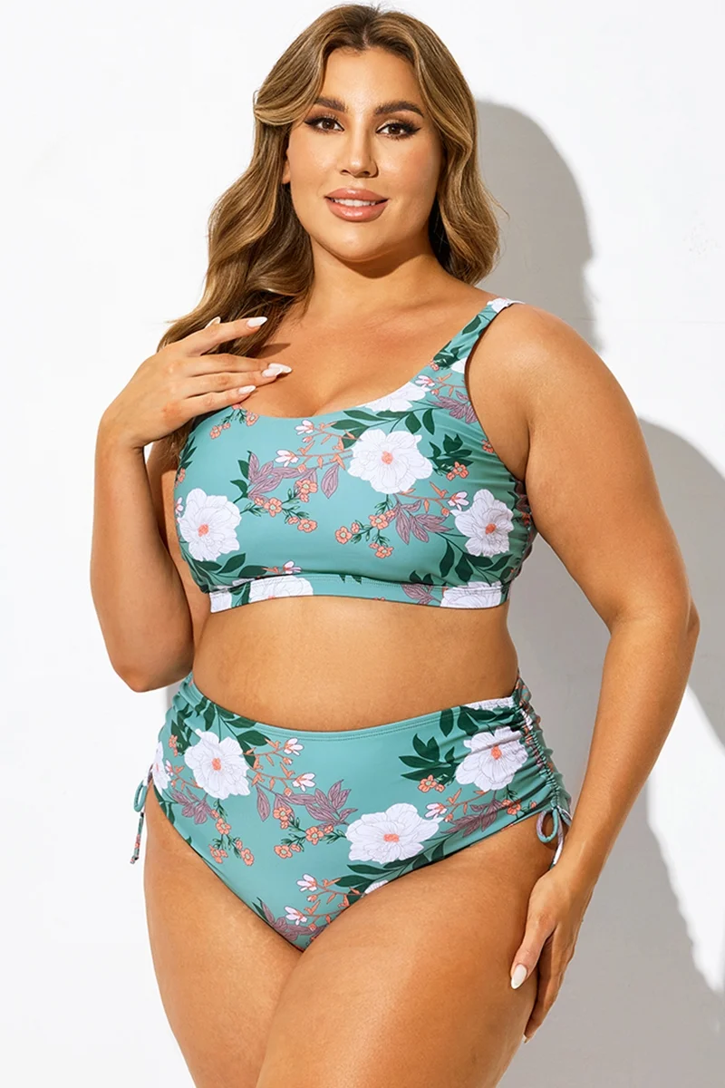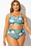 Green Floral Print Crossback Bikini Top - PremCurve