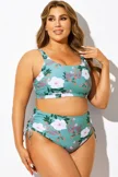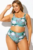 Green Floral Print Crossback Bikini Top