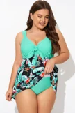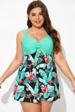 Green Flower Tie-front Wide Straps Swimdress