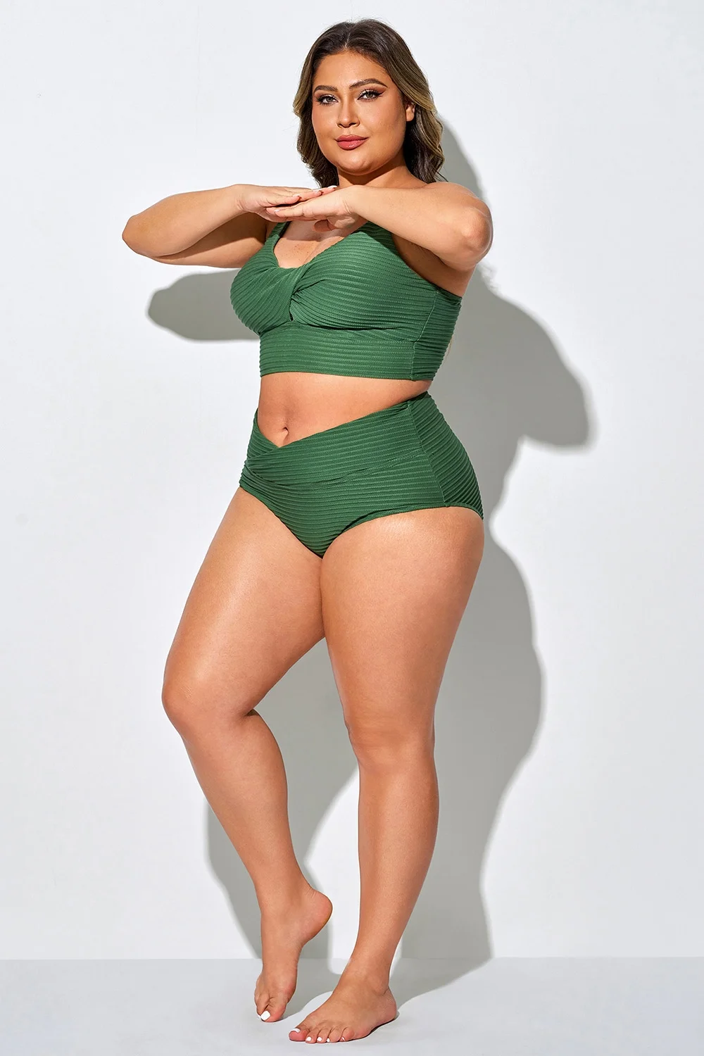 Green Front Crossover High Waist Swim Brief - PremCurve