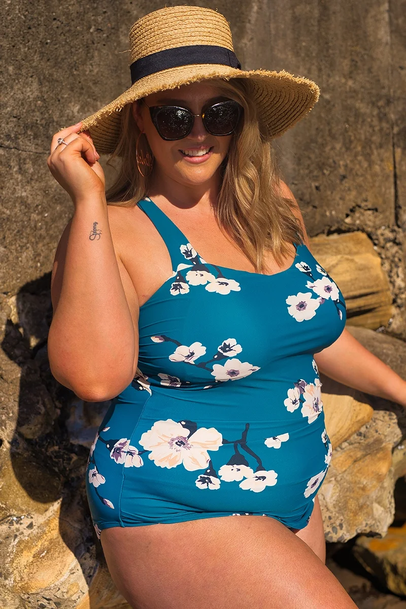 My favorite bathing suit ever! Everything says in place. I am a 16w, big busted, ordered the 2xl and it’s perfect! Sexy but but modest! You will not be disappointed! I am going to order another one for back up and the black poppy print in the same style.
