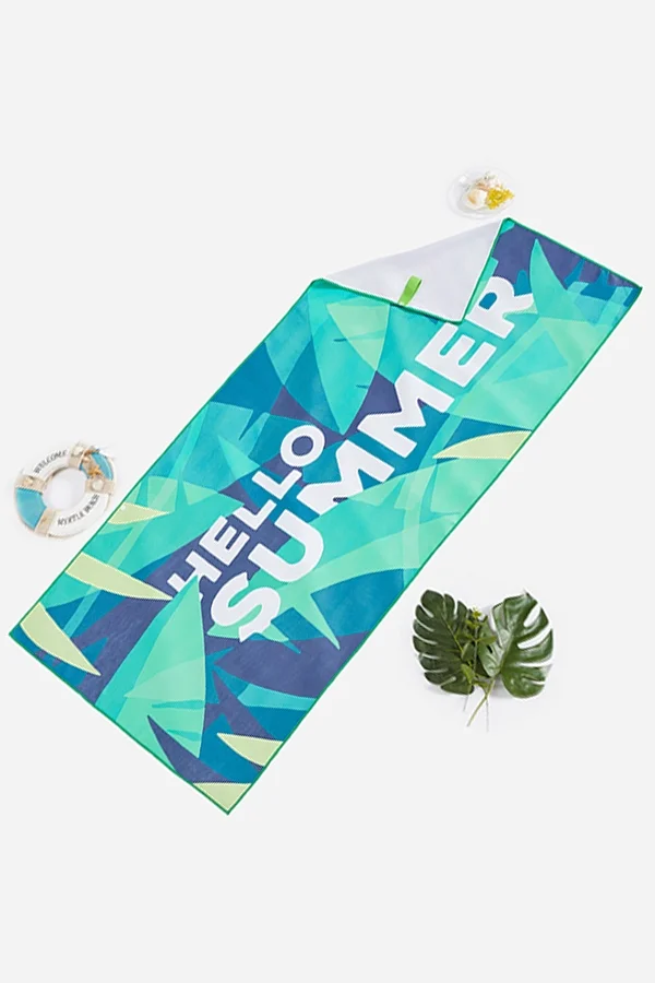 Green Leaf Print Oversized Absorbent Sand Beach Towel - PremCurve