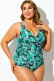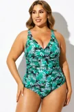 Green Palm Cross Front One-Piece Swimsuit - PremCurve