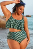 Green Plaid Sexy Scoop Neck Bikini Top - PremCurve