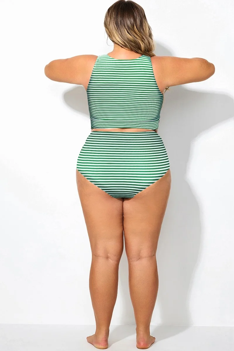 Green Striped Elegant High Waist Swim Brief - PremCurve
