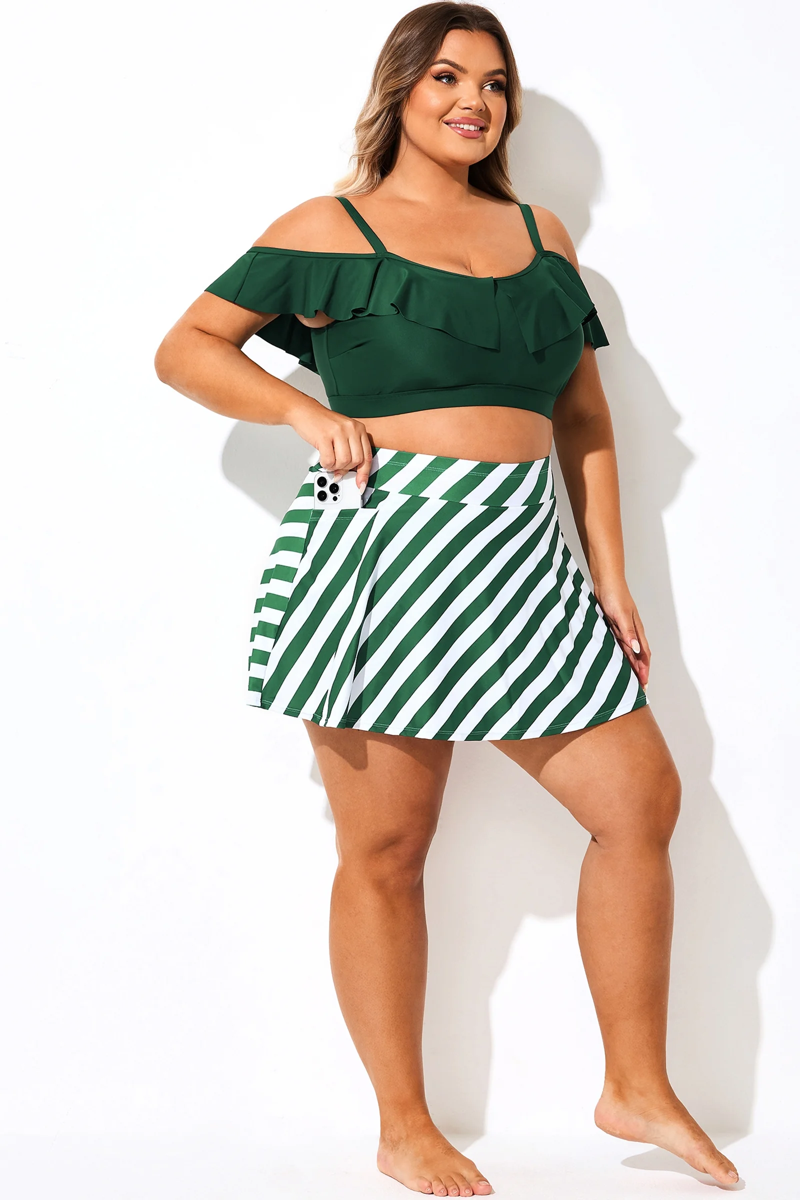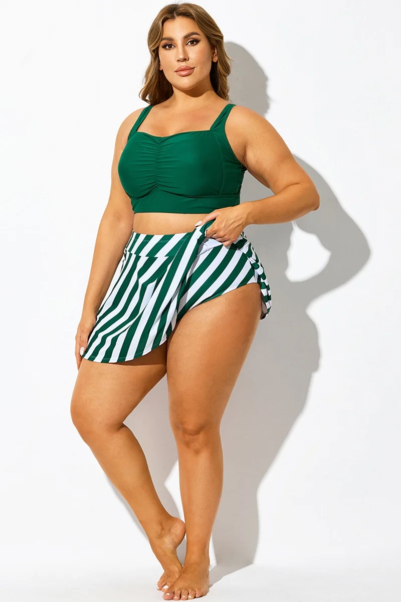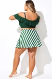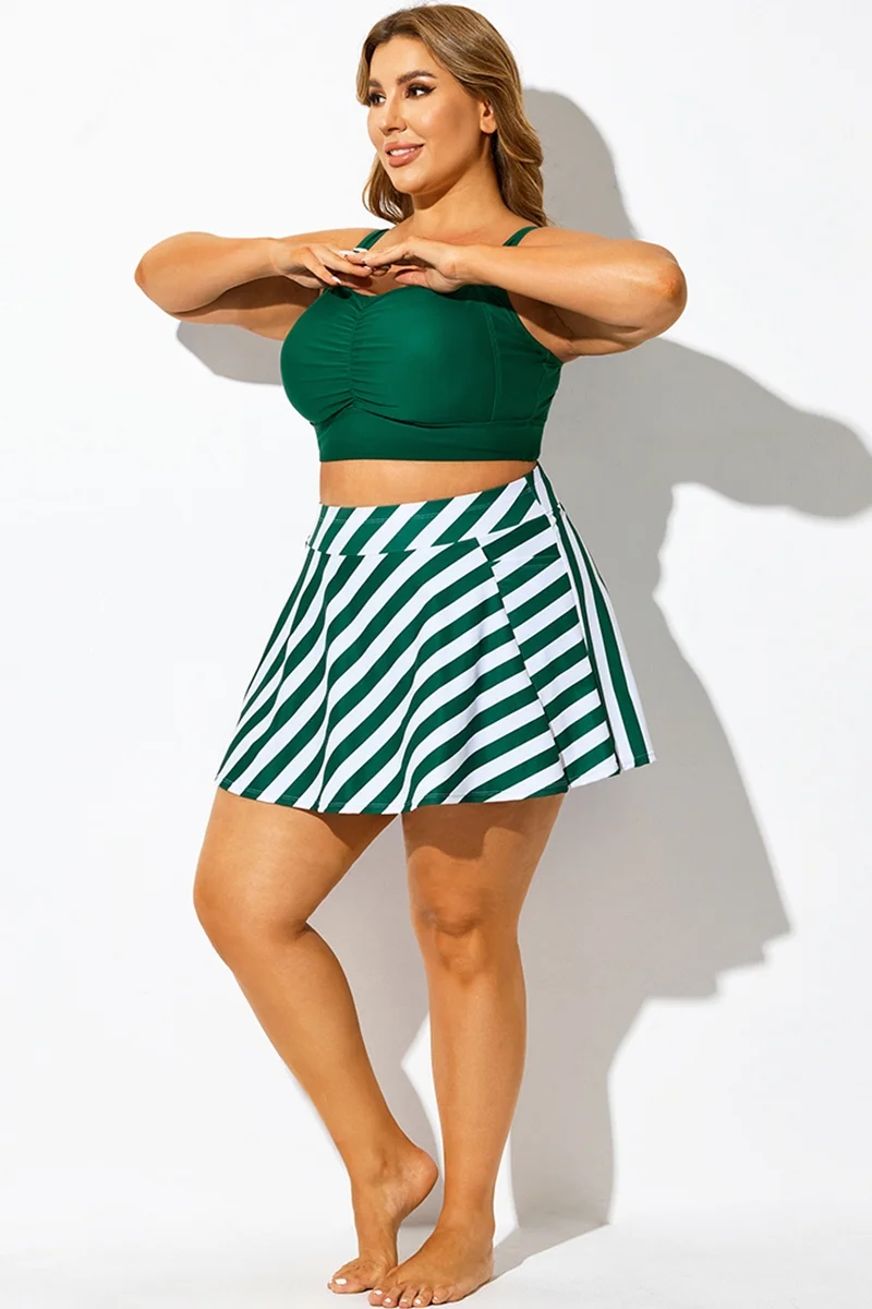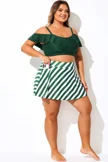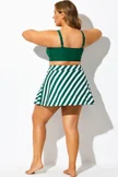 Green Striped High Waisted Bikini Slit Skirt - PremCurve