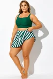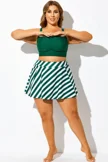 Green Striped High Waisted Bikini Slit Skirt