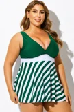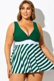 Green Striped V-Neck U Back Tankini Top - PremCurve