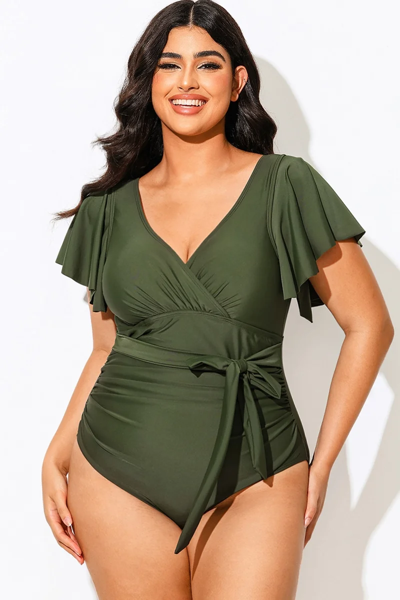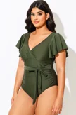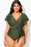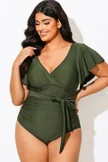 Green Check Twist Front One Piece Swimsuit