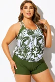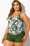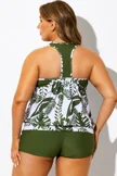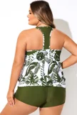 Green V-Neck T-Back Blouson Tankini Top - PremCurve