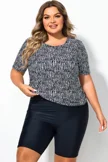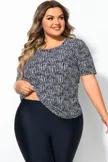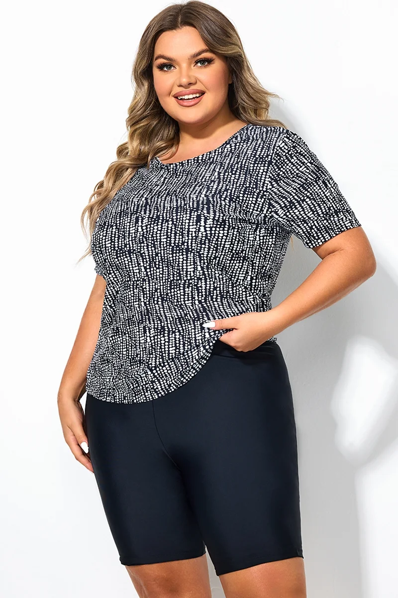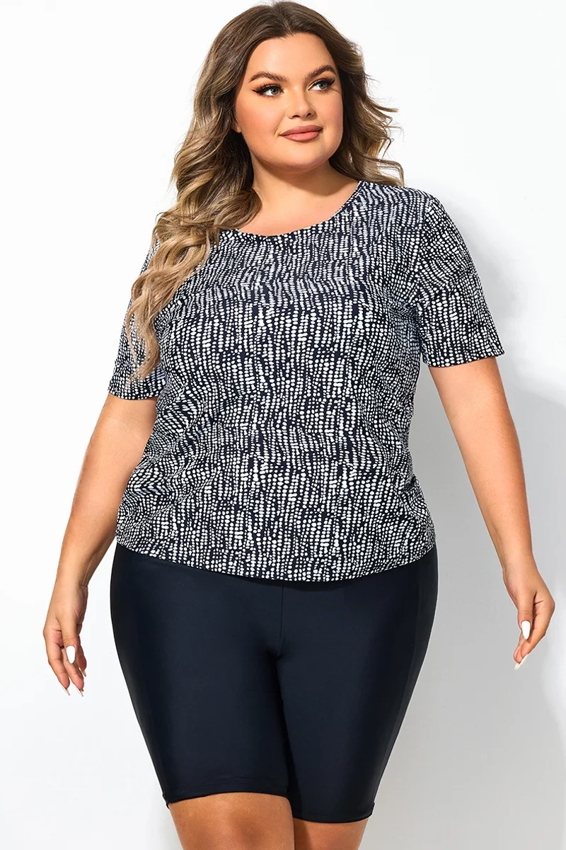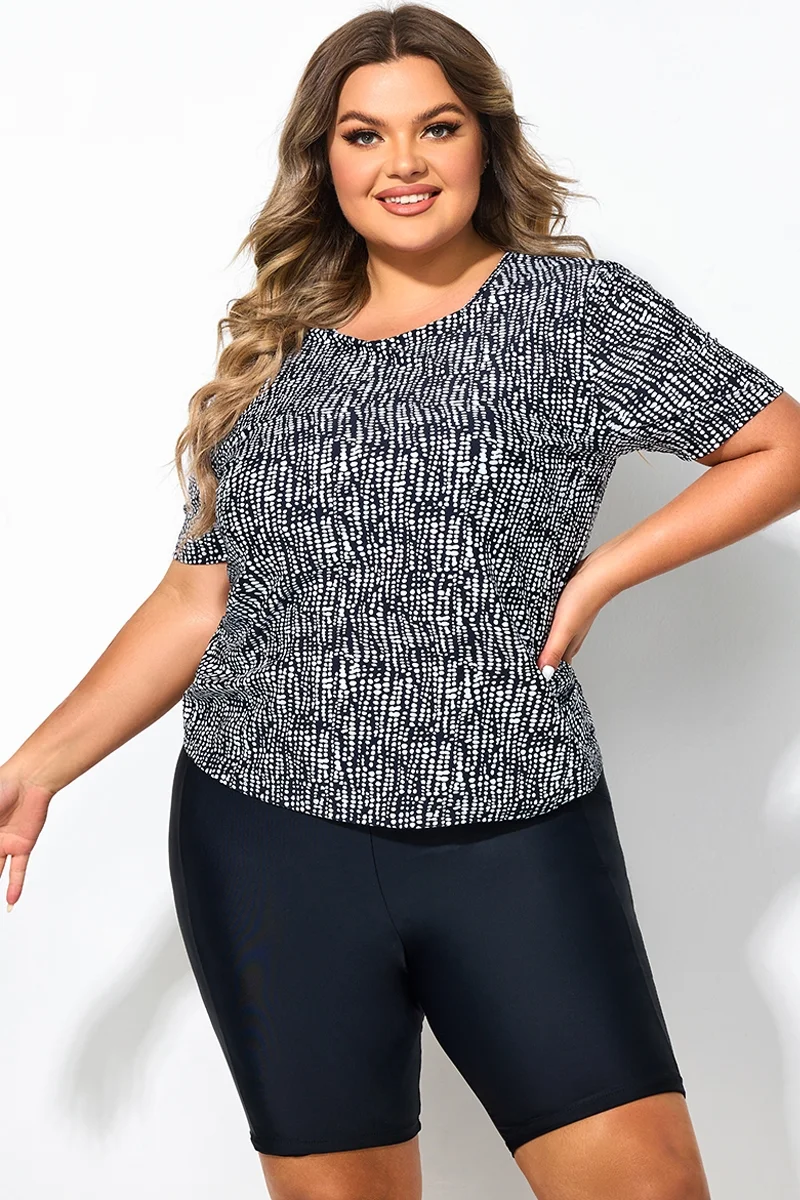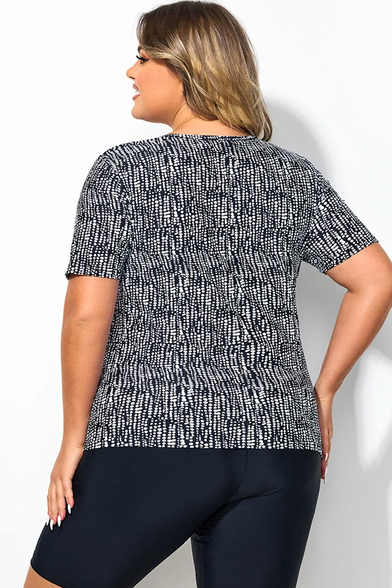 High Neck Short Sleeves Abstract Stripe Print Tankini Top - PremCurve