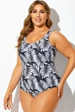 Leaf Chic Print Sport One Piece Swimsuit - PremCurve