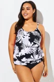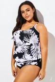 Leaf Printed Adjustable straps Lady's Blouson Tankini Top - PremCurve
