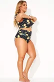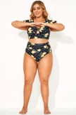 Plus Size Round Neck Black Patchwork Bikini Top