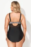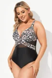 Plus Size Round Neck Black Patchwork Bikini Top