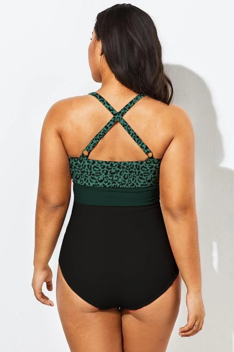 Leopard Green  Twist Front Skinny One Piece Swimsuit