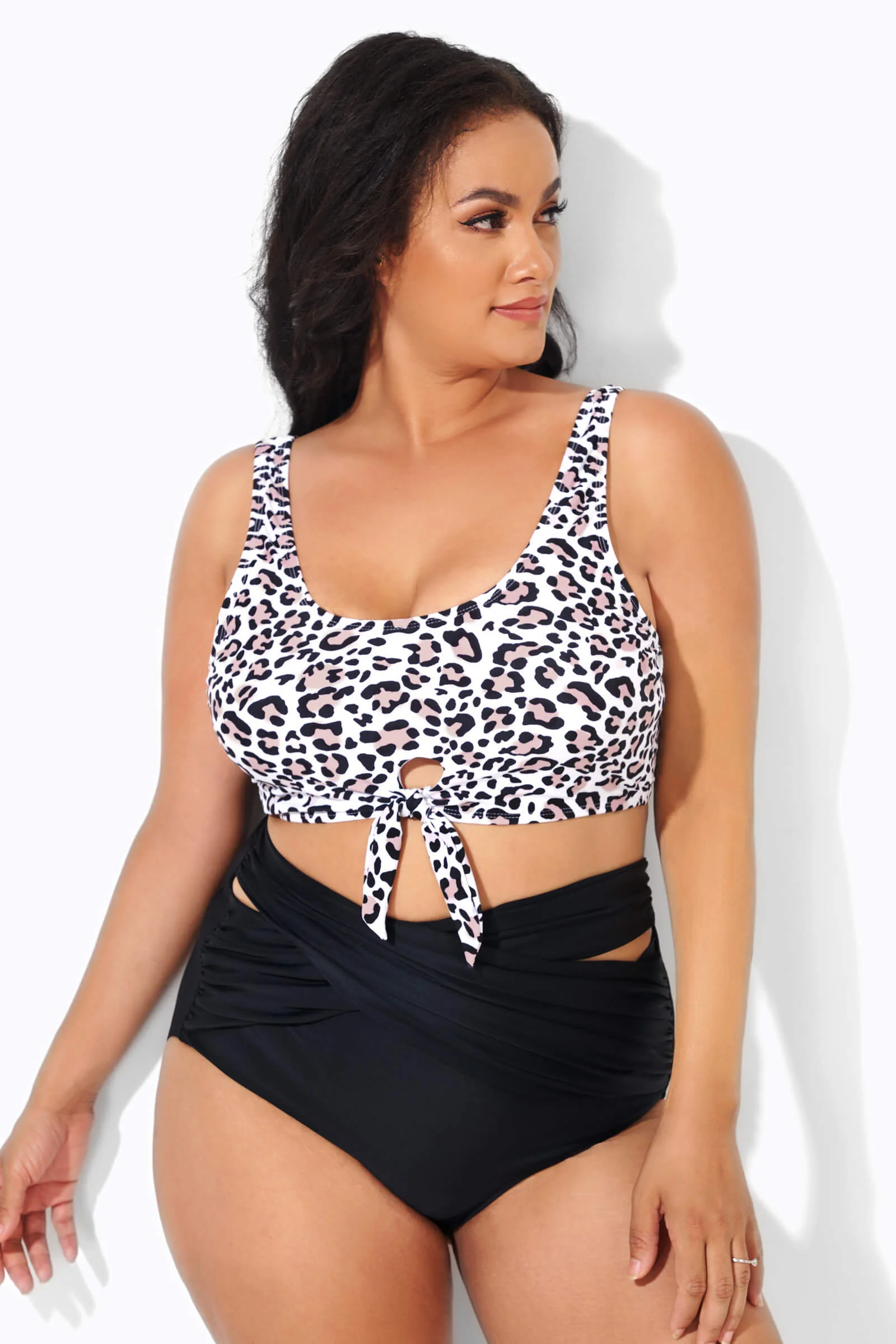 Leopard Print Knot Front Women Bikini Top - PremCurve