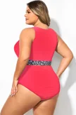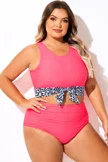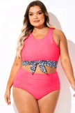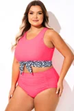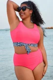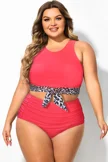Plus Size Round Neck Black Patchwork Bikini Top
