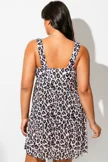 Leopard Print Stretch Mesh Round Neck Swimdress