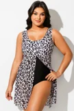 Leopard Print Stretch Mesh Round Neck Swimdress - PremCurve