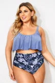 Plus Size Round Neck Black Patchwork Bikini Top