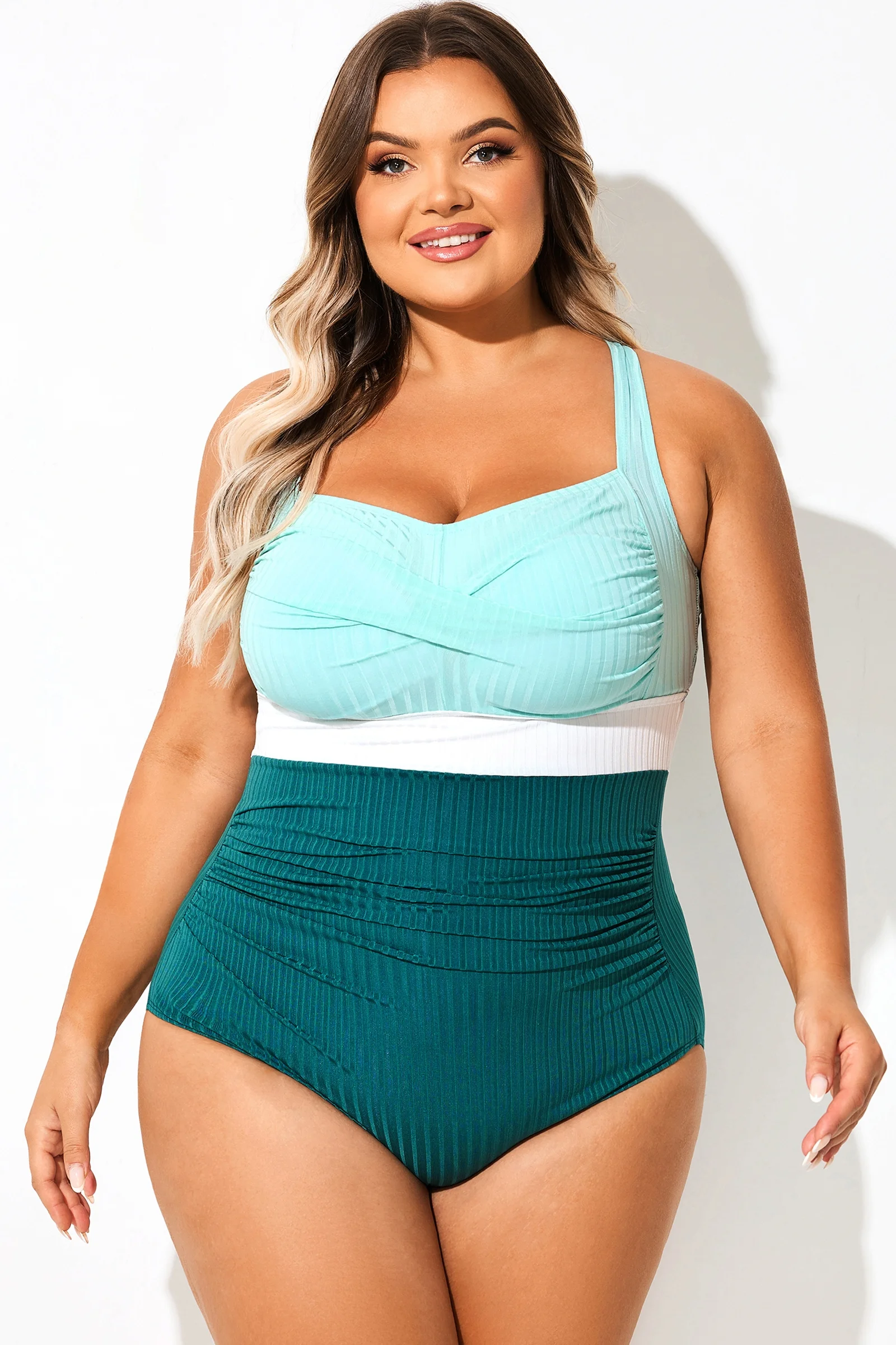 Light Green Twist Front Skinny One Piece Swimsuit - PremCurve