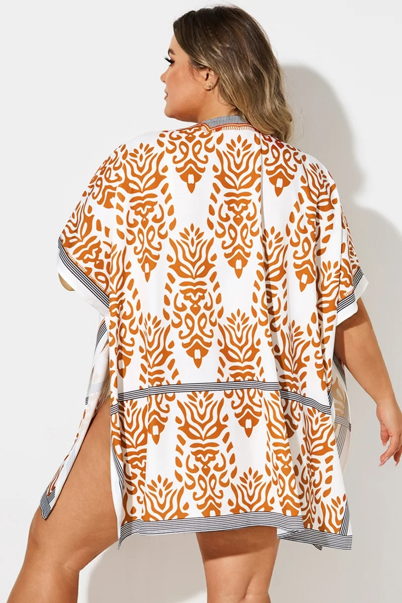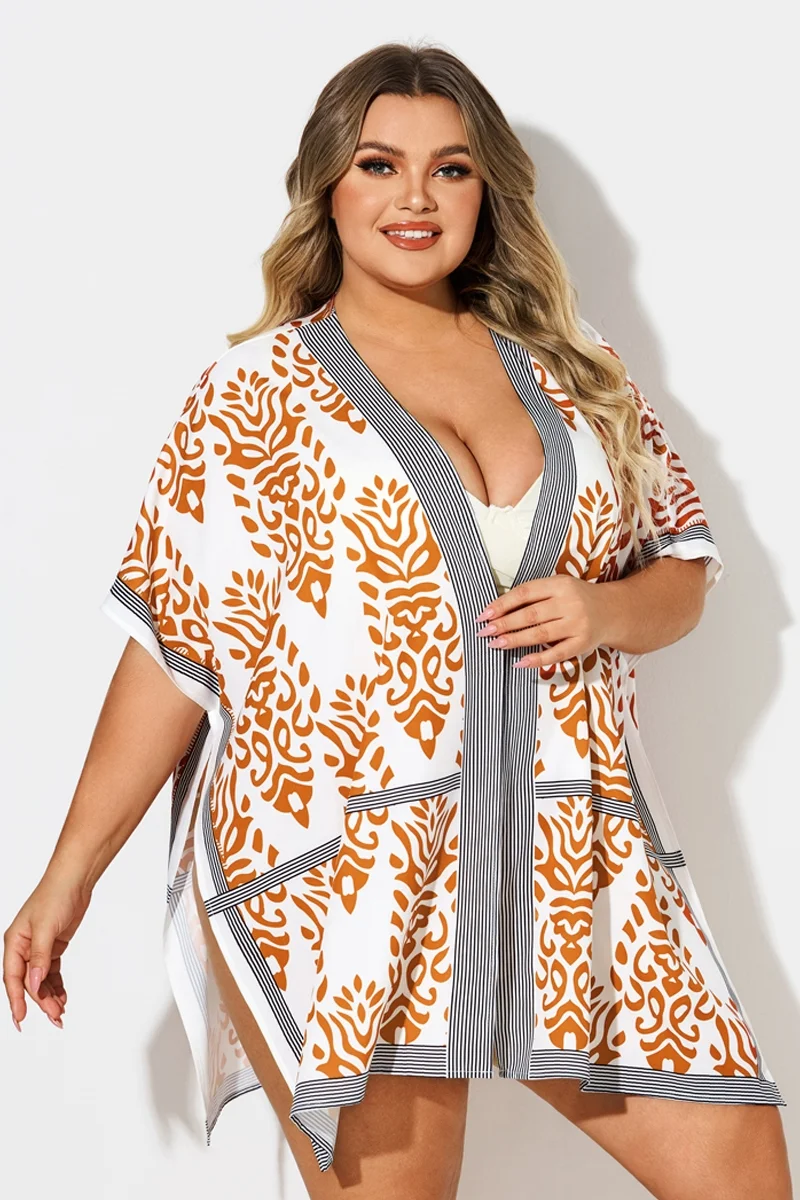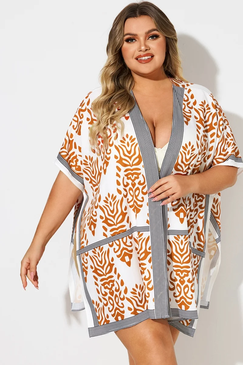 Loose Orange Print Batwing Sleeve Cover Up - PremCurve