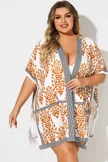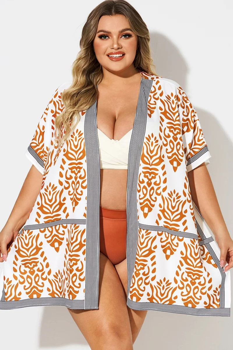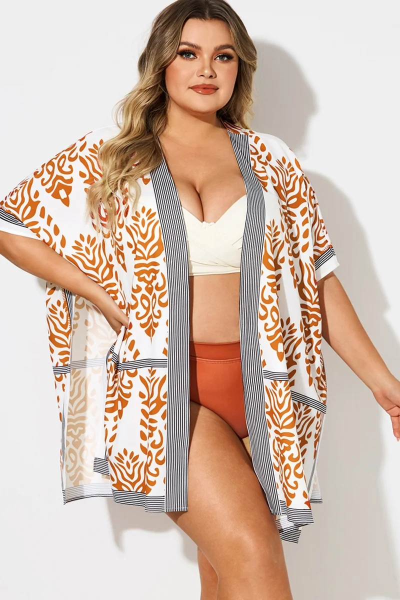 Loose Orange Print Batwing Sleeve Cover Up