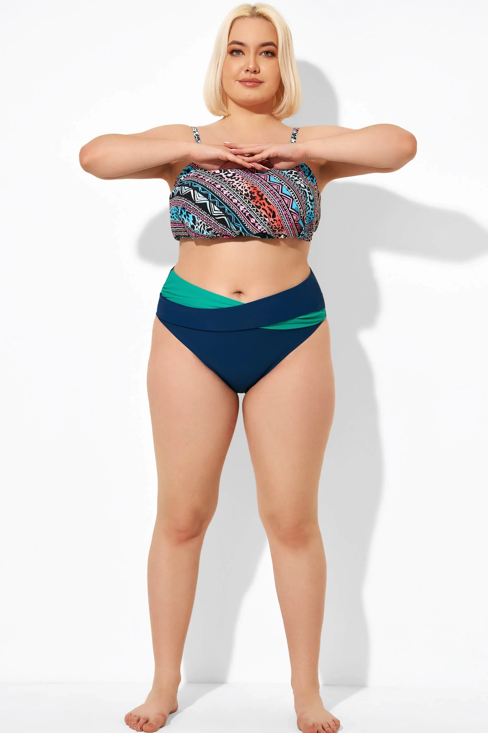Twist Front Patchwork Colorblock Bikini Top