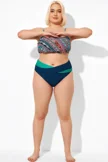 Blue Shirred High Waist Swim Brief For Lady