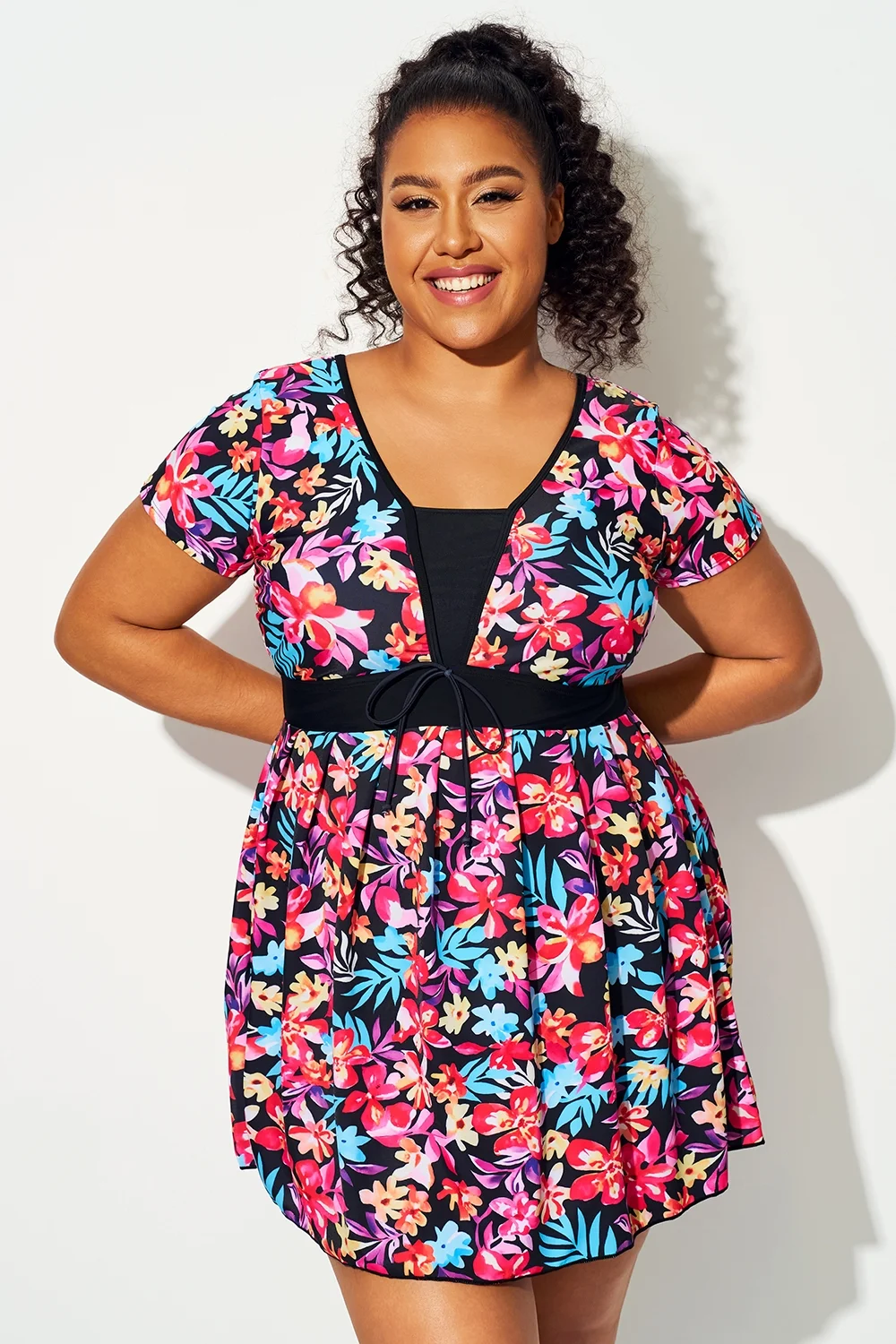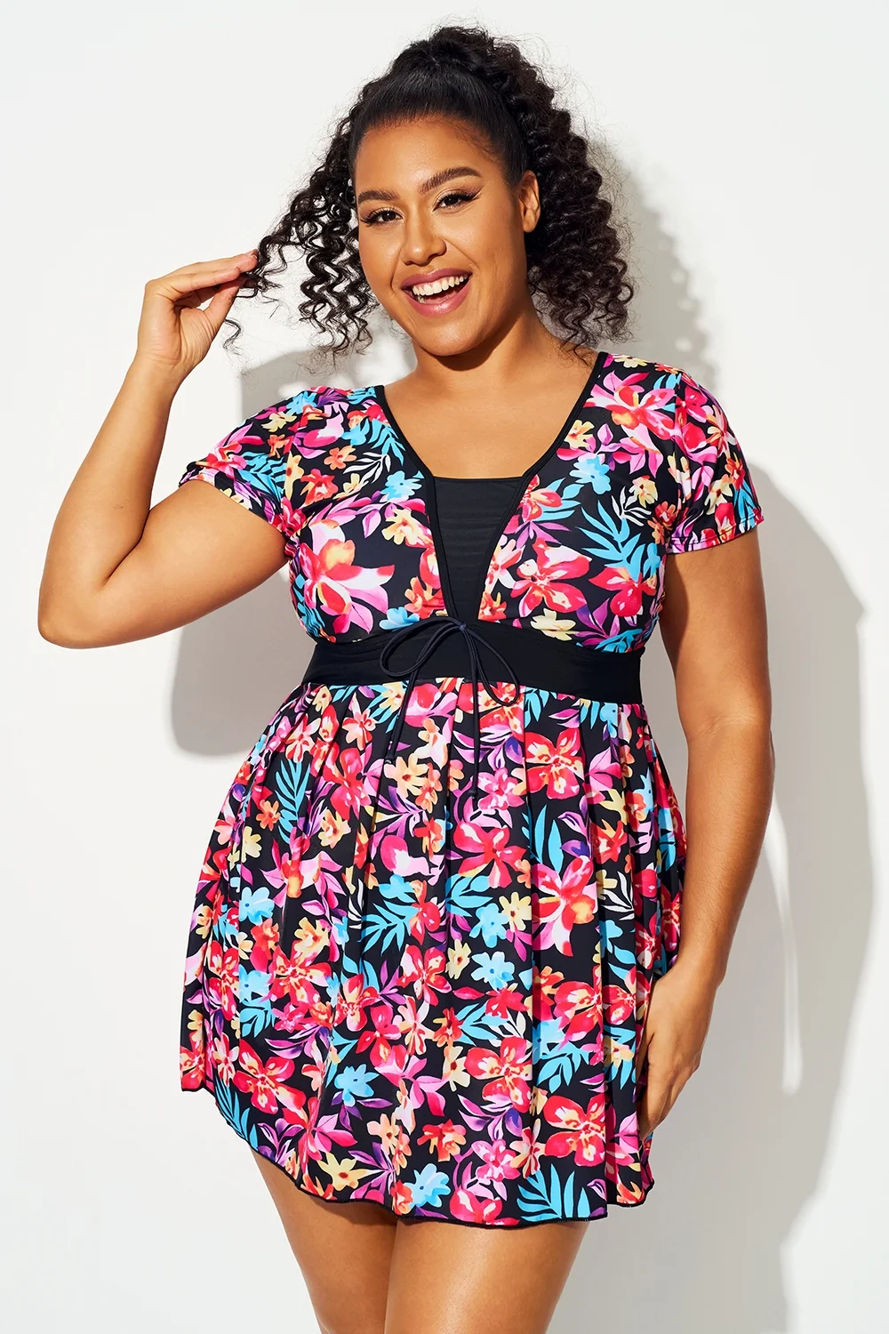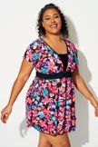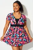 Multi Floral Print Short Sleeve Swimdress