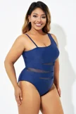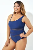 Navy Blue One Shoulder Mesh One Piece Swimsuit - PremCurve