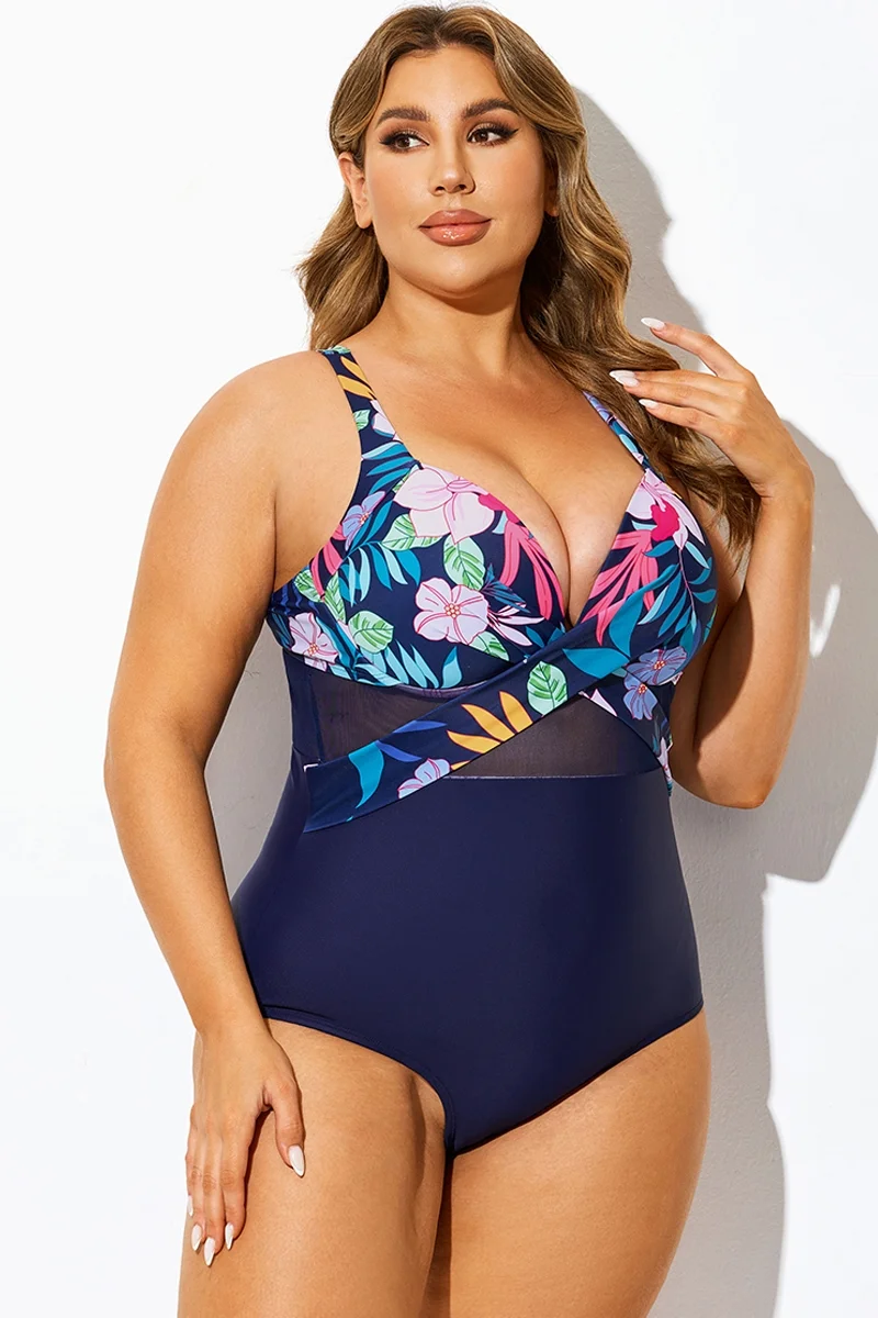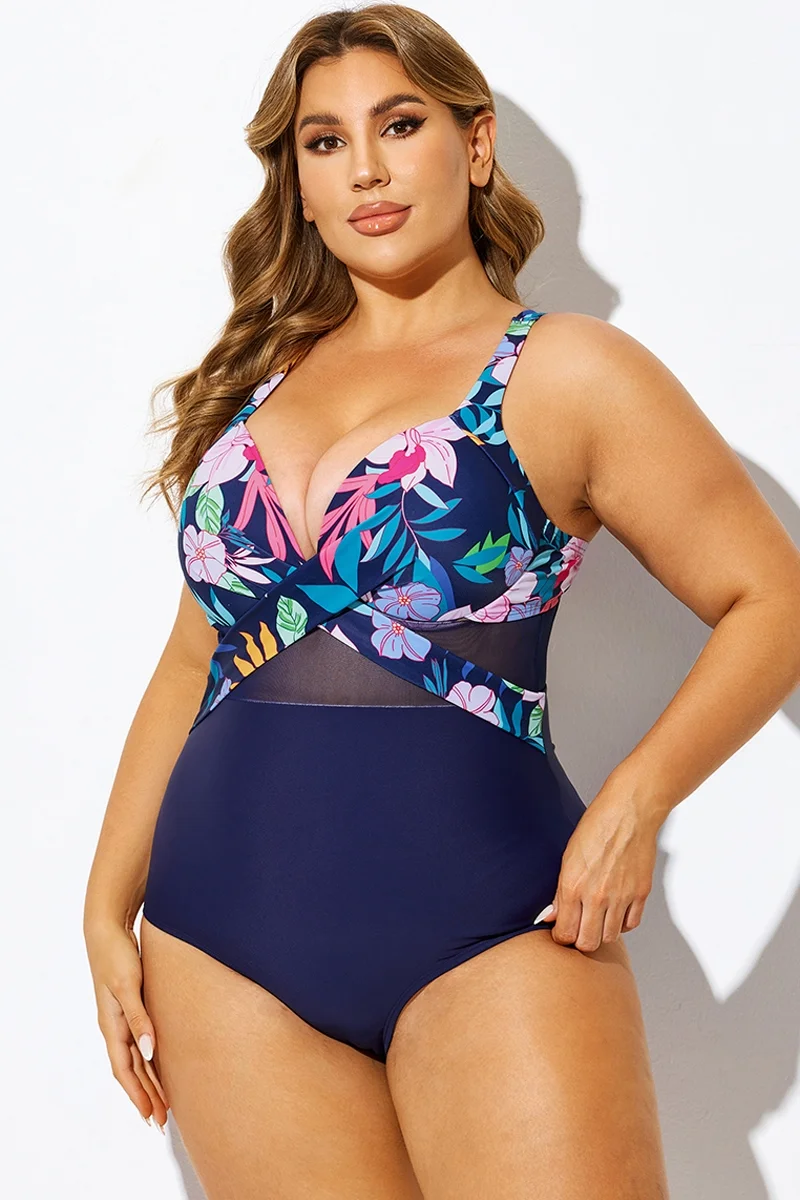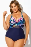 Navy Cut Out Mesh Underwire One Piece Swimsuit - PremCurve