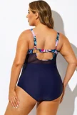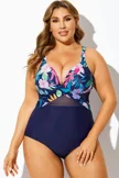Navy Cut Out Mesh Underwire One Piece Swimsuit