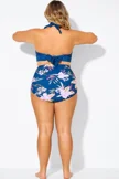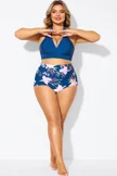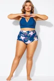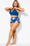 Navy Floral Pattern High Waist Bikini Bottom - PremCurve