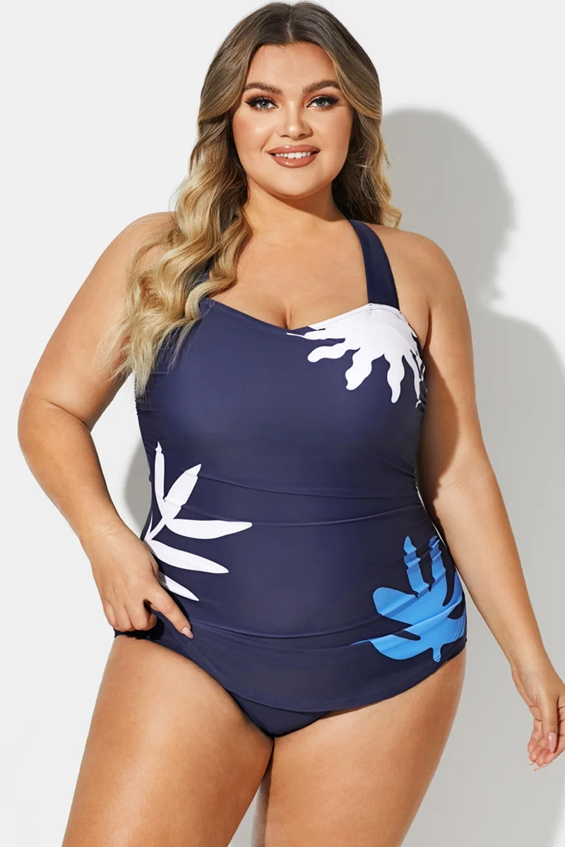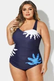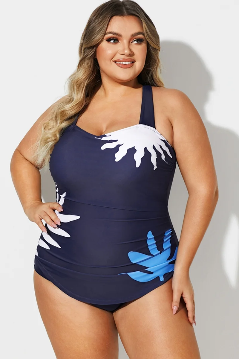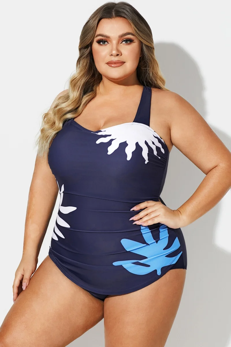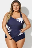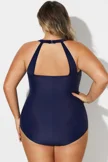 Navy H-Back Sarong Front One Piece Swimsuit - PremCurve